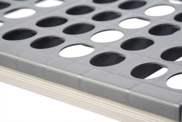 << ReturnModular shelving systemwith polymer removable shelf inserts Reference : 5711 Static modular shelving system Download Assembly is through conic metal clips manufactured in anodized aluminium and with the popular system patented uprights/horizontal shelf rails. The 5711 Fermostock can be installed in single units or combinations allowing a number of configurations including « L », « U », « T », and « + » layouts. This system allows one person to carry out the installation quickly and efficiently without the need of tools. The 5711 FERMOSTOCK is designed for the food industry and conforms to the construction regulations ensuring the highest hygienic standards. Each polymer insert is dishwasher safe (+ 100°C maxi). FERMOSTOCK 5711 offers the solutions in space management ensuring maximum use of available storage area through combinations of its standards units. We offer the facility for self design through our Fermostock layout and costing program available on request. Using temperature : - 40°C to + 80°C. Available sizes: 2 heights of upright: 1685 mm or 1800 mm 3 depths: 360 mm*, 460, 560* mm 10 lengths: 650, 770, 890, 950, 1070, 1190, 1310, 1490, 1610, 1730 mm * Dimension to receive Gastronorm trays DOWNLOAD Request for quotation / Order FERMOSTOCK shelving (PDF)1) Click on the link above : when the form opens in the browser, save it to your computer (Adobe Reader required : download here) 2) Onto the computer, open the form and complete it 3) Save the completed form to your computer 4) Send the form as an E-Mail attachment to: contact@fermod.com or print the form and fax it to 01 42 86 84 51 Fermostock 5711 Documentation (PDF version) Fermostock 5711 Technical Description word (Word version) Fermostock 5711 Technical Description (PDF version) Fermostock NSF Certification (PDF version) Fermostock 5711 Exploded view - Technical description (PDF version) |